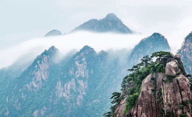 一座不在五岳之中的山,卻集泰山之峻、華山之險、峨眉之秀、雁蕩之奇于一身,又兼有遒勁盤曲的蒼松、奇巧別致的怪石、翻騰洶涌的云海、常年不息的溫泉,原本默默無名的黃山,就這樣以包羅萬象卻自成一體的豐富,從安徽南部的煙雨迷霧中,走入文人的詩詞文章,進(jìn)入萬千大眾的眼界中。