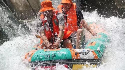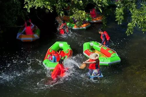 登上皮筏艇,蕩漾在清澈的山泉水中,跟隨著時而平緩時而湍急的河流,感受涼爽和激情的碰撞。
