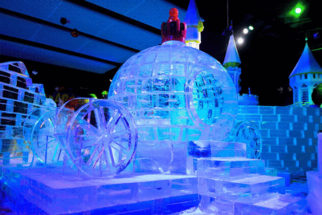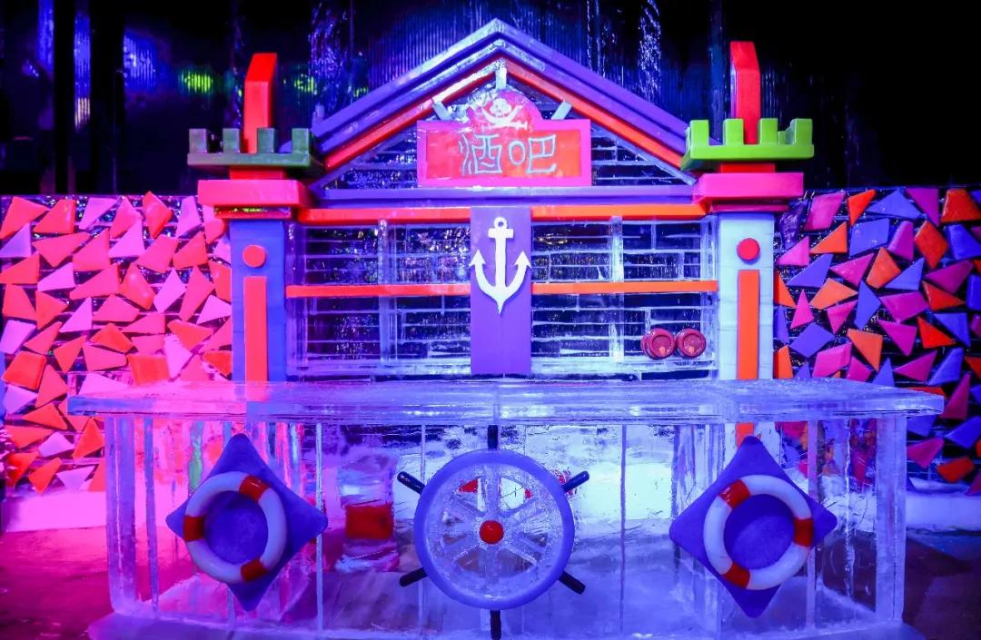 有“冰雪城堡”、“雪鄉(xiāng)童話”、"冰室酒吧"等主題模塊