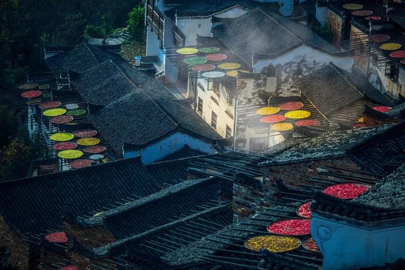 篁嶺,一個隱藏在大山深處奇特的山居村落,因其獨(dú)特的曬秋景觀、粉墻黛瓦的徽式古民居將會深深吸引著世界目光。飽經(jīng)滄桑的徽式民居土磚外墻與曬架上五彩繽紛豐收成果組合,繪就了一幅閑適、安詳、恬靜的古村風(fēng)情畫,與遠(yuǎn)山、近水、粉墻、黛瓦相印成趣,感受天人合一的境界。