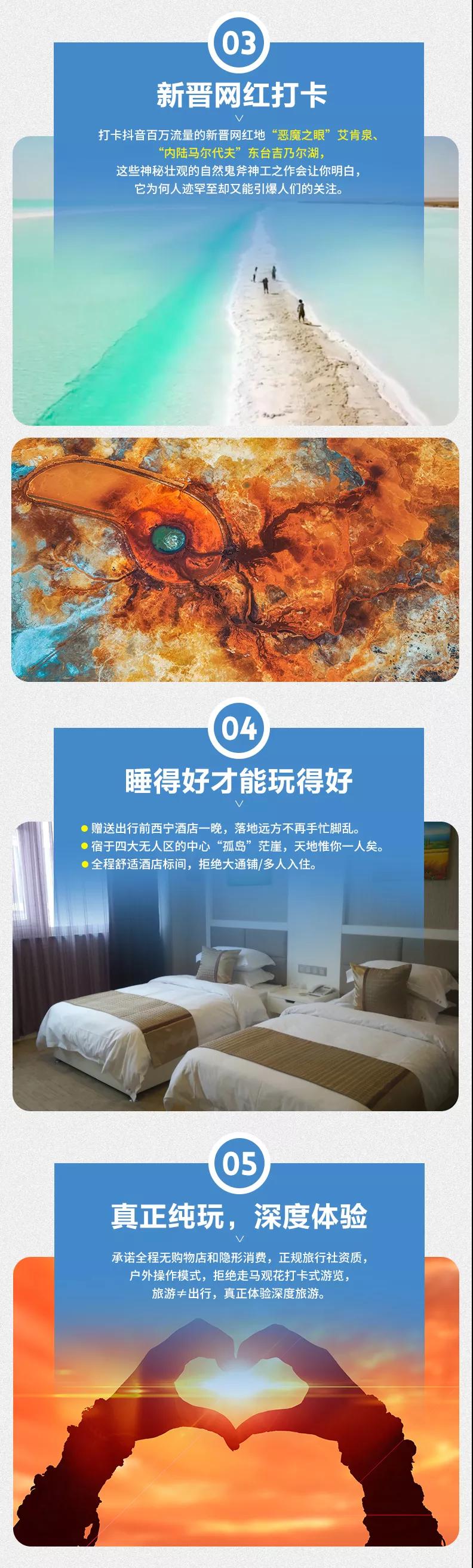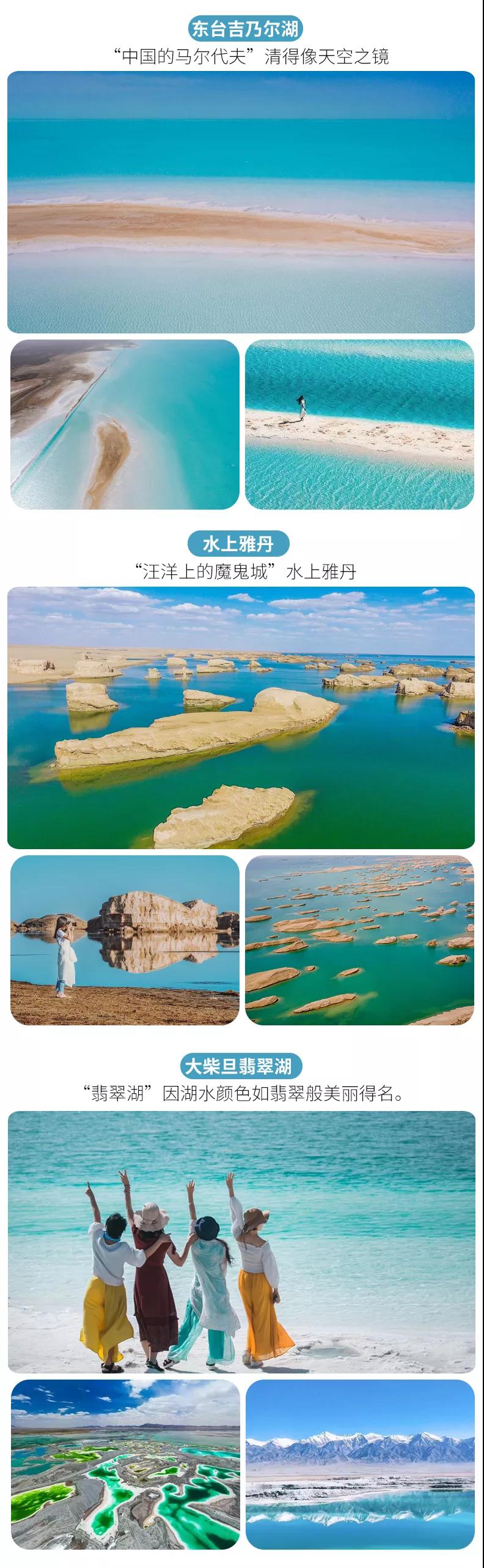 (4)茫崖翡翠湖、東臺(tái)吉乃爾湖、艾肯泉等尚未設(shè)立為景區(qū),但如當(dāng)?shù)厝耸杖…h(huán)保費(fèi)等費(fèi)用與我方無關(guān),望您諒解。