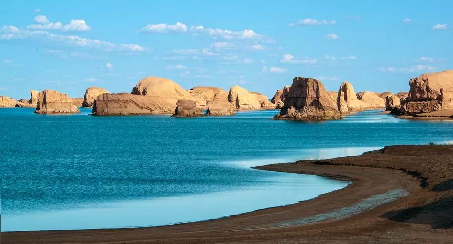 這是世界上唯一一處水上雅丹地貌,因其位置較偏僻,即使是當(dāng)?shù)厝艘部赡懿恢趺催^去,所以至今仍是一片未開發(fā)的處女地,鮮少有人涉足。這立于汪洋之上的雅丹地貌群經(jīng)過上千年的風(fēng)雨殘蝕,如同遨游大海顯露脊背的群鯨,湖岸邊高大的鯨背是天然的觀景臺(tái),極目遠(yuǎn)望,西邊是高低錯(cuò)落的水上雅丹地貌群,有的如策馬揚(yáng)鞭,有的如奔馳的駱駝,有的像婀娜多姿的女子,魔幻而神秘。以清澈透明的藍(lán)天為幕,參差錯(cuò)落的雅丹地貌與碧波交相輝映,天上鴨鳴雁啼,水中波光粼粼,這一望無際的荒漠中憑空而出了一片”汪洋“,只有親身看過這一片汪洋上的鬼斧神工之作,才會(huì)明白為它為什么會(huì)被人稱為“魔鬼城”。