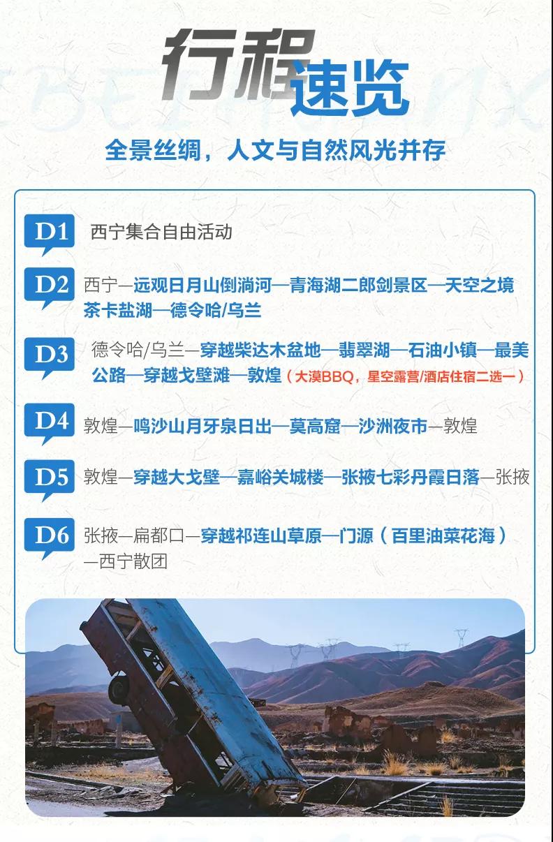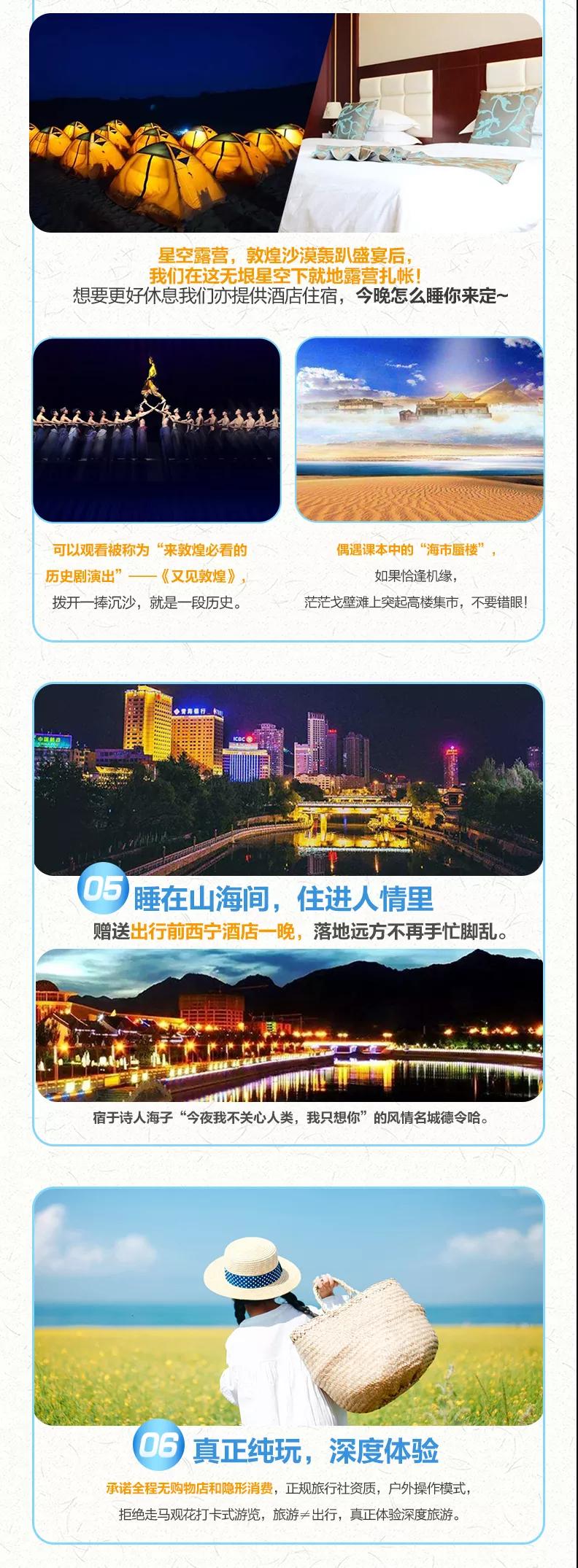 贈(zèng)送:贈(zèng)送特色敦煌沙漠BBQ;贈(zèng)送貼心禮包旅游三寶、魔術(shù)頭巾、礦泉水;贈(zèng)送西寧市區(qū)24小時(shí)接機(jī)/接火車服務(wù)。(贈(zèng)送項(xiàng)目不用費(fèi)用不退)