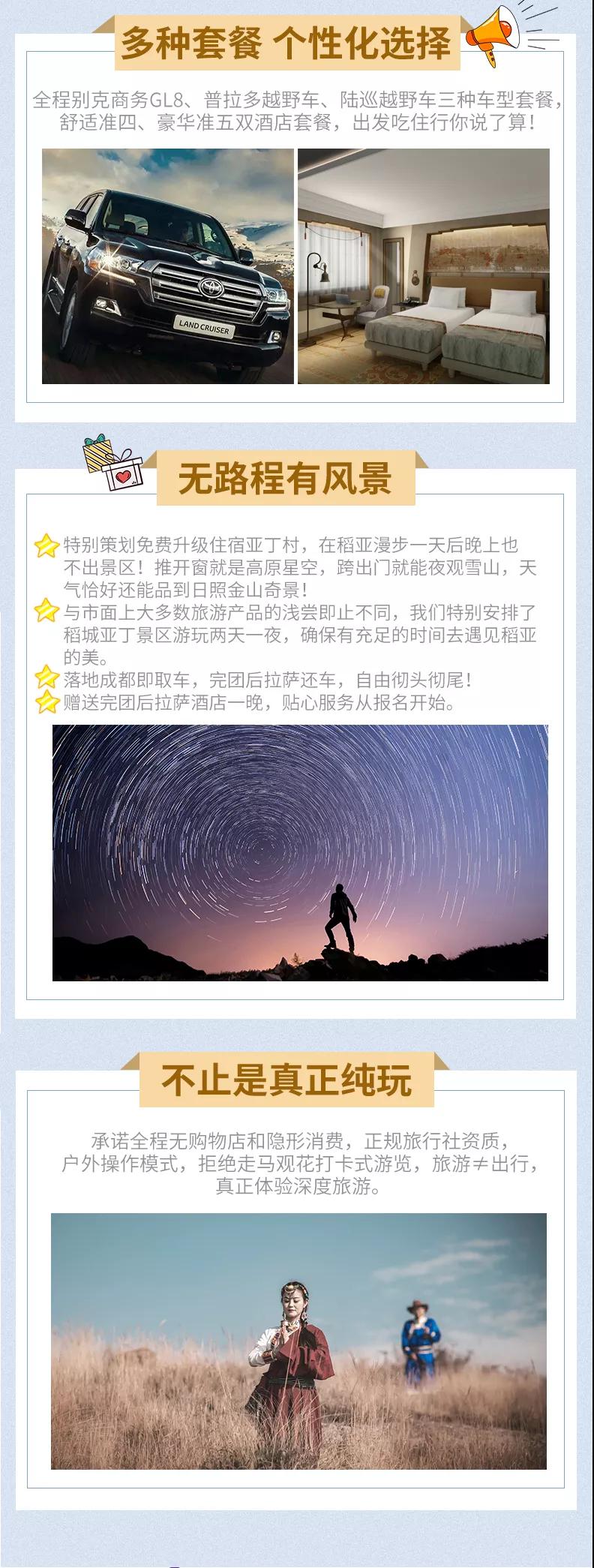 (1)根據(jù)季節(jié)、路況各方面的因素,我們將在稻城縣和香格里拉鎮(zhèn)選擇更好的住宿點安排入住。