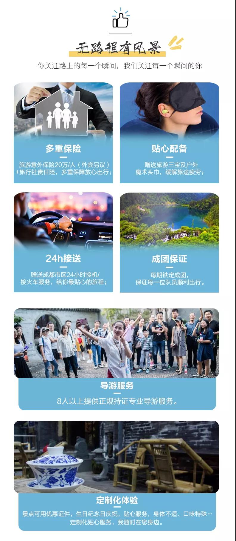 1、關(guān)于車輛交通:目前四川旅游市場8座以下車輛無法辦理旅游牌照,請游客知悉,以此理由提起的投訴我方拒不受理,望您諒解。