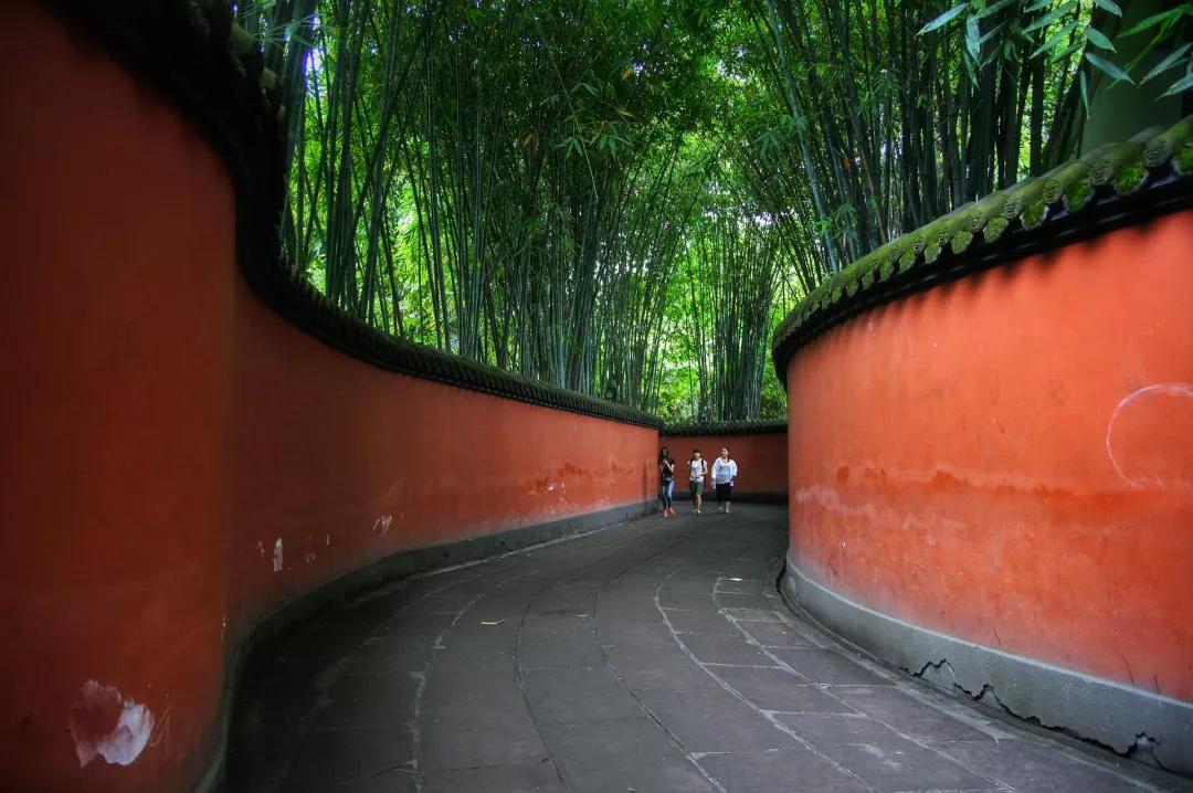 用過午餐后我們前往全世界影響最大的三國遺跡博物館——【武侯祠】(漢昭烈廟),它是中國唯一的一座君臣合祀祠廟和最負(fù)盛名的諸葛亮、劉備及蜀漢英雄紀(jì)念地。規(guī)模宏大的武侯祠里廣植松柏竹木,寧靜肅然,其中又以一道網(wǎng)紅的景色“紅墻竹影”最為人稱道,紅墻夾道蜿蜒延伸而去,兩旁青竹蔥蘢,陽光下竹影疏疏,斑駁映畫紅墻之上,走在這里趁人少的時候立馬按下快門,直出大片。