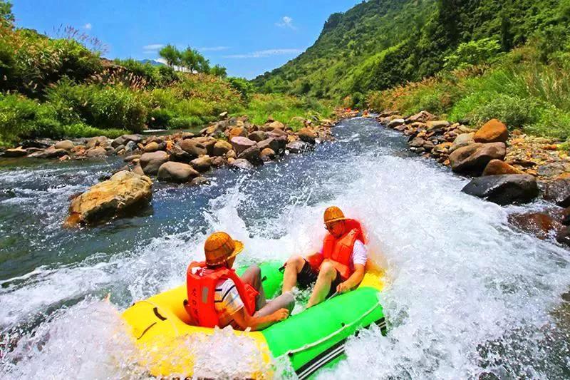 登上皮筏艇,蕩漾在清澈的山泉水中,跟隨著時而平緩時而湍急的河流,感受涼爽和激情的碰撞。