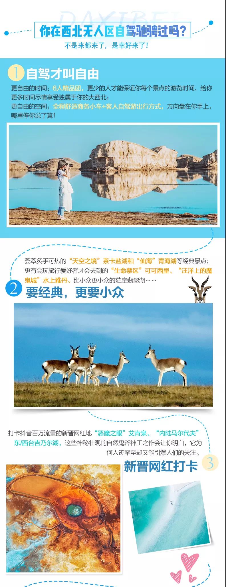(3)茫崖翡翠湖、東/西臺(tái)吉乃爾湖、艾肯泉等尚未設(shè)立為景區(qū),但如當(dāng)?shù)厝耸杖…h(huán)保費(fèi)等費(fèi)用與我方無關(guān),望您諒解。
