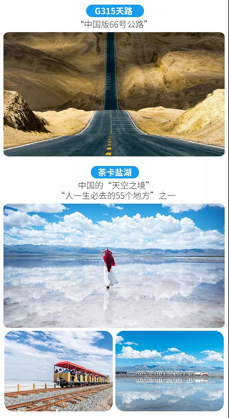 游覽過人跡罕至的茫崖翡翠湖,今天我們就去打卡炙手可熱的“天空之境”茶卡鹽湖?!?strong>茶卡鹽湖】被國家旅游地理雜志評(píng)為“人一生必去的55個(gè)地方”之一,這里的采鹽歷史非常悠久,湖水含鹽量很大,湖面上會(huì)自然結(jié)晶,一片純白。結(jié)晶之上是一層薄薄的露水,將天空、云朵和對(duì)岸的山都倒映在白色的湖里,非常漂亮,所以也被稱為“中國的天空之境”。大家可以乘坐景區(qū)內(nèi)的小火車前往景區(qū)深處游玩,如果不乘坐小火車,沿著鐵軌向湖深處散散步拍拍照片也是非常愜意的。
