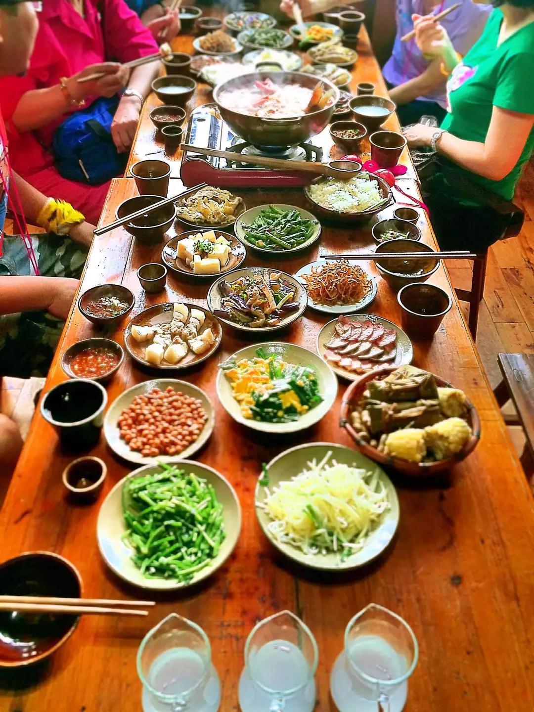西江安排特色長桌宴酸湯魚火鍋品苗家米酒,體驗苗寨人家的“高山流水”,感受苗妹的熱情