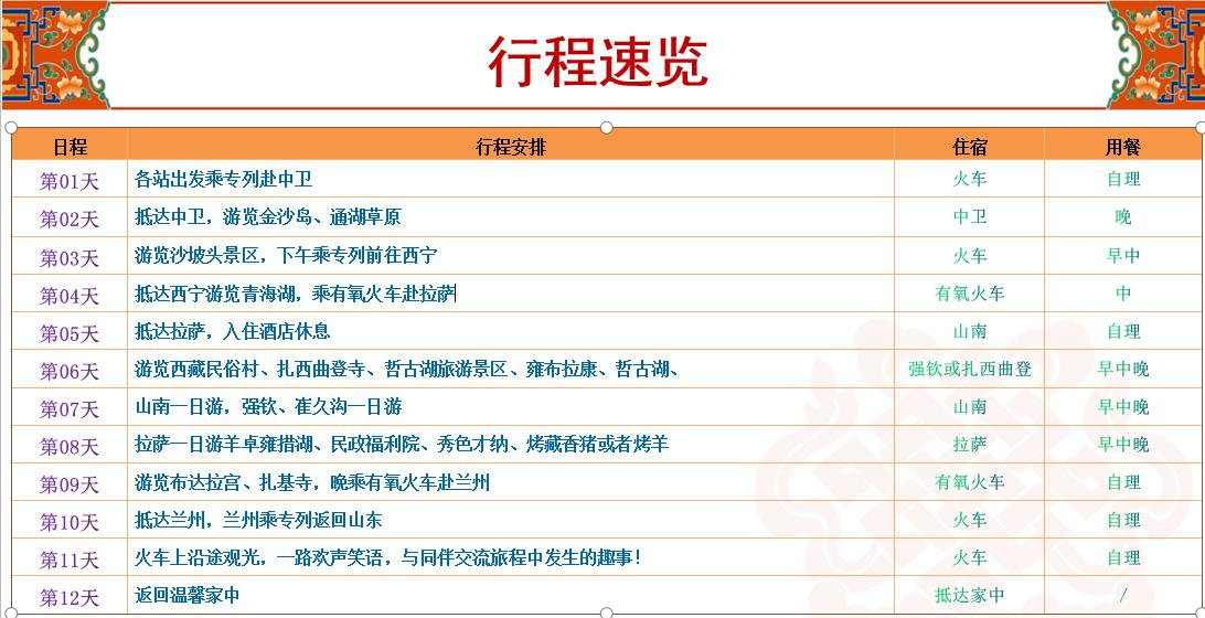 3、交通:往返火車臥鋪,當(dāng)?shù)芈糜诬?,保證每人每正座,因特殊氣候條件,旅游車輛均無空調(diào)設(shè)施。