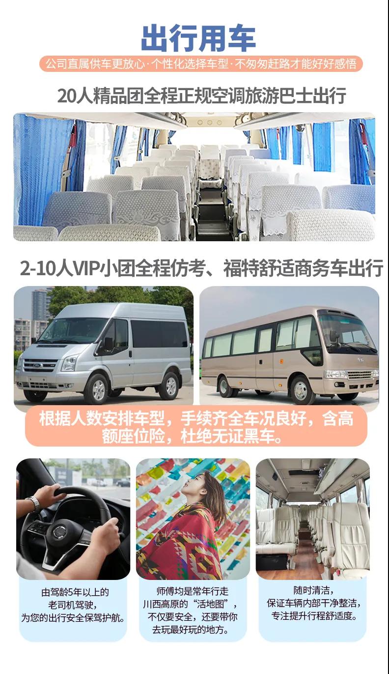 1、關(guān)于車輛交通:目前四川旅游市場(chǎng)8座以下車輛無(wú)法辦理旅游牌照,請(qǐng)游客知悉,以此理由提起的投訴我方拒不受理,望您諒解。