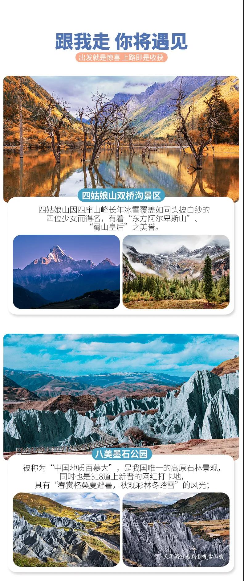 (3)如因道路維修或其他不可抗力因素,無(wú)法游覽四姑娘山雙橋溝景區(qū),則調(diào)整為游覽【碧峰峽】景區(qū),敬請(qǐng)諒解。
