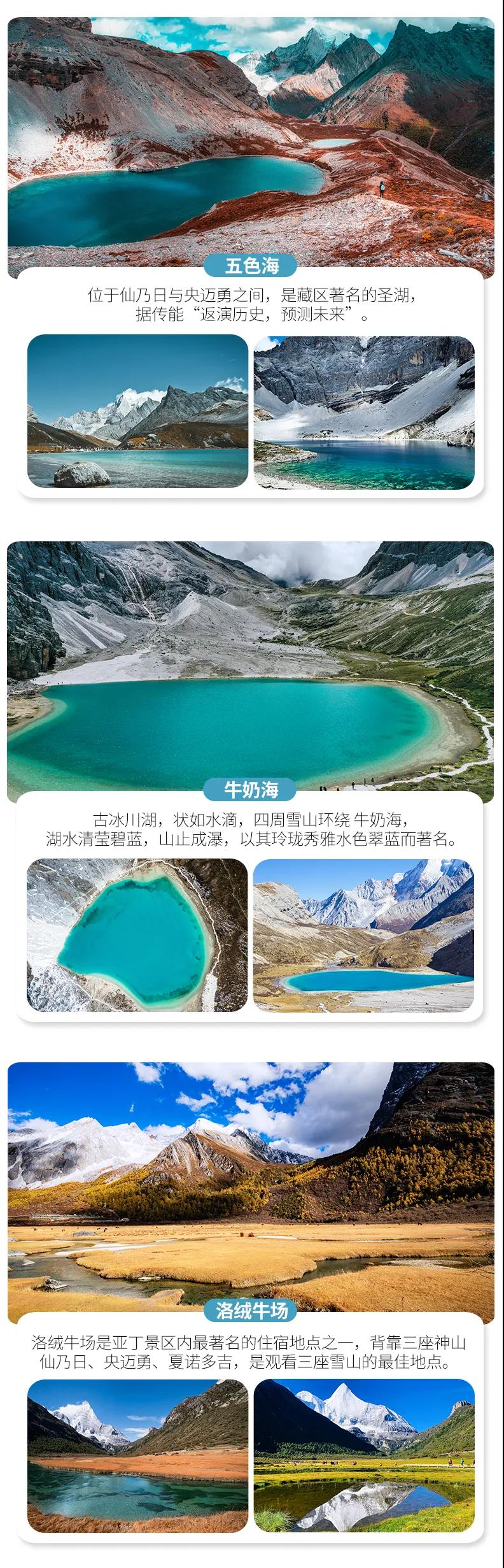 D6 亞丁村/香格里拉鎮(zhèn) — (約13公里/1小時(shí))亞丁風(fēng)景區(qū)洛絨牛場(chǎng) — (460米/3分鐘)牛奶海 — (約511米/7分鐘)五色海 — (約124公里/5小時(shí))稻城縣