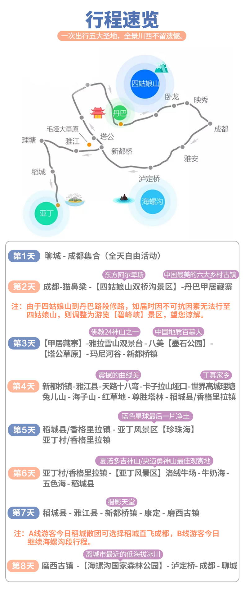 D8 磨西古鎮(zhèn)— (約1公里/4分鐘)海螺溝國(guó)家森林公園— (約315公里/5.5小時(shí))成都市區(qū)— 聊城