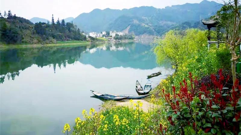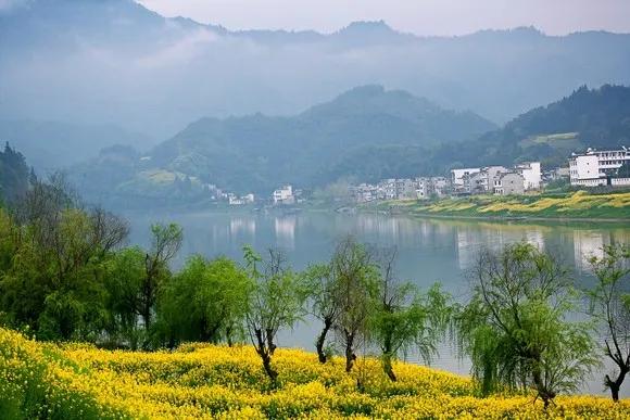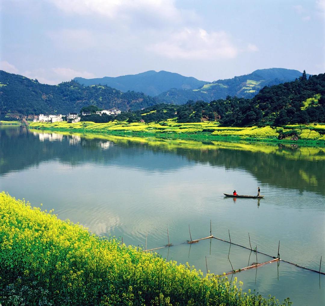 水色甄美,四季澄碧,沿江兩岸,青山蜿蜒,峰巒疊翠。船行在新安江上,兩岸樟桉疊翠,油菜花黃,粉墻黛瓦點(diǎn)綴其間,水墨徽州宛若天成!