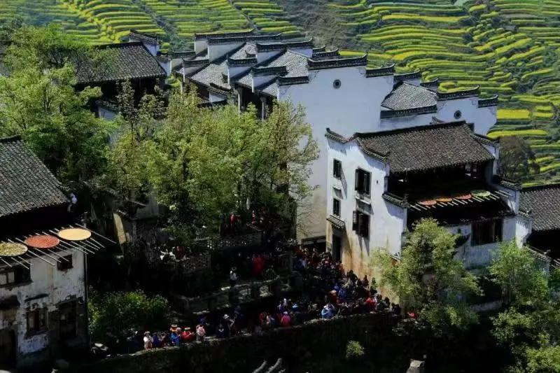 早餐后前往梯云村落、夢(mèng)幻田園--篁嶺人家,【80公里】一個(gè)懸掛在山坡上的古村落,群山環(huán)繞的數(shù)百棟徽派古民居在百米落差的坡面錯(cuò)落有序,與對(duì)面層層疊疊的千畝梯田花海遙相呼應(yīng),地?zé)o三尺平,自然條件的局限卻激發(fā)了先民的想象和創(chuàng)造力,從而在無(wú)意間造就了一處中國(guó)絕無(wú)僅有的“曬秋人家”風(fēng)情畫。篁嶺屬典型山居村落,民居圍繞水口呈扇形梯狀錯(cuò)落排布。篁嶺因”曬秋”聞名遐邇,村落“天街”似玉帶將經(jīng)典古建串接,徽式商鋪林立,前店后坊,一幅流動(dòng)的縮寫版“清明上河圖”。