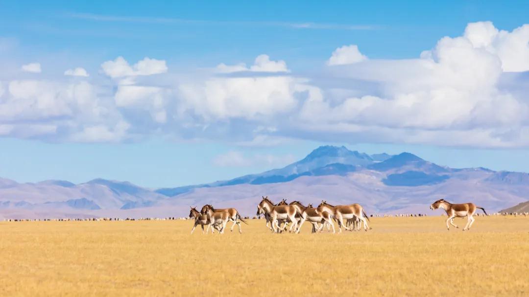 賞完日出,我們翻越那根拉山口,穿越【羌塘草原】,這是一片無(wú)人的荒原,卻也是野生動(dòng)物的天堂。一路上能見到藏羚羊藏野驢,在廣袤無(wú)垠的高原草甸上,成群結(jié)隊(duì),自在奔跑,奔跑時(shí)帶起灰塵,很快消失在眼前。一路顛簸一路狂奔在這方神秘的高天厚土之上,離塵世越來(lái)越遠(yuǎn),離自然越來(lái)越近。這里跟我們工作生活的都市仿佛兩個(gè)世界,“無(wú)人區(qū)”里荒草遍地渺無(wú)人跡,億萬(wàn)年的寂靜很難被打破,站在高原的遼闊天空下,頓覺自己渺小,而有時(shí)候,人是要品嘗一下自己的渺小的,才能從浩大之中知道昨日之事今日之愁的微小,才知道皆可拋;走進(jìn)它,沒有人打擾你,好好享受一番它的莊嚴(yán)、靜穆和深邃。