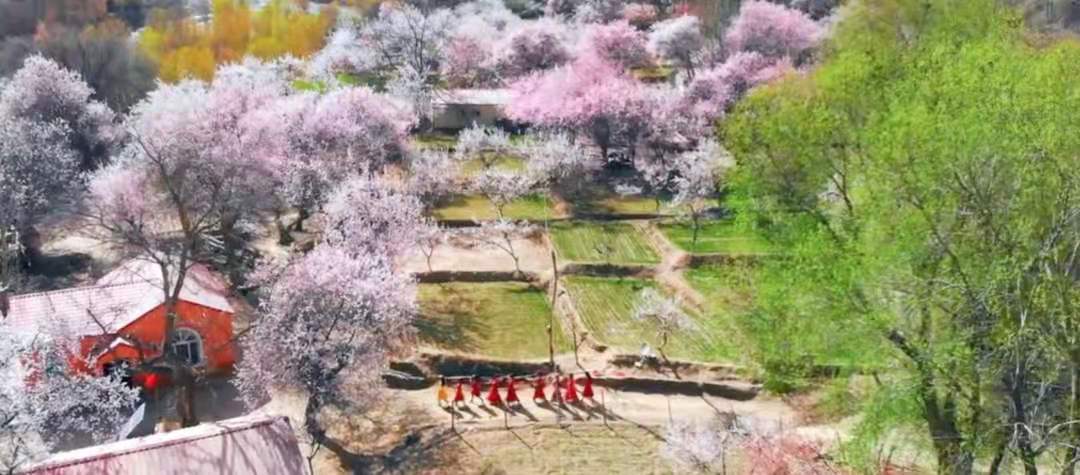 五個月的漫漫長冬過后帕米爾高原的雪融化了,冰川下的杏花開了……
