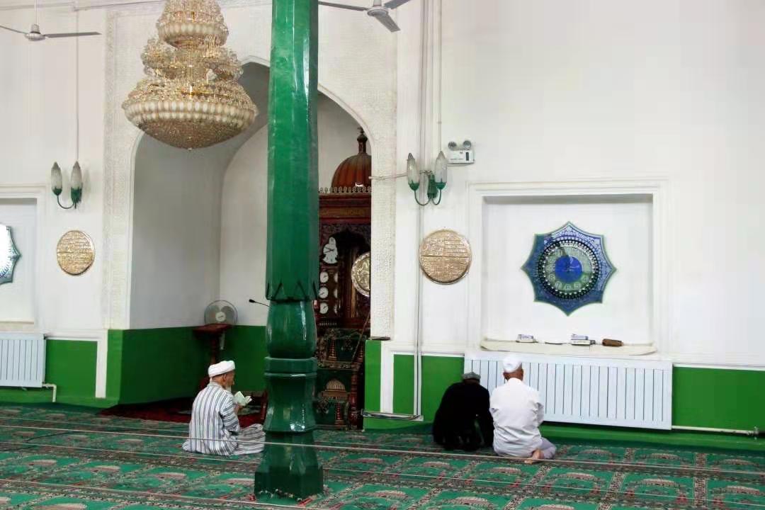 (艾提尕爾清真寺內禱告的教徒)