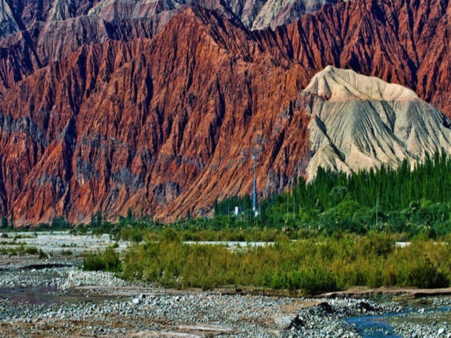 早餐后乘車前往卡拉庫里湖,意為“黑?!?途中可參觀瀏覽維吾爾農(nóng)家田園風光,大沙漠邊緣感受塞外江南的那份悠然自得。到達紅山,可見到有南疆火焰山之稱的【奧依塔克洪山】,觀賞在素有流沙河之稱的【白沙湖】及鬼斧神工的布倫口【白沙山】前留影。參觀古絲綢之路古驛站。