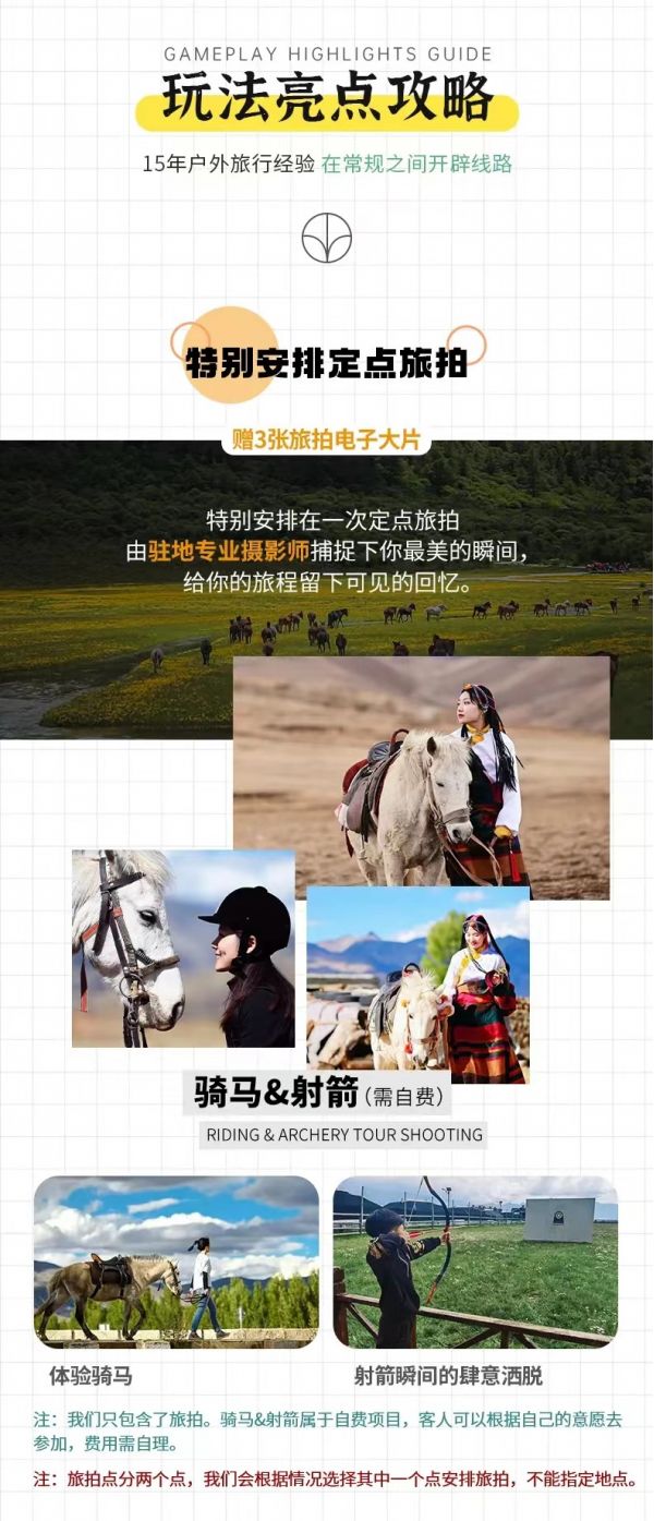 (2) 洛絨牛場往返騎馬費(fèi)用500元/人,價(jià)格隨季節(jié)浮動(dòng),以景區(qū)定價(jià)為準(zhǔn)(可選擇);