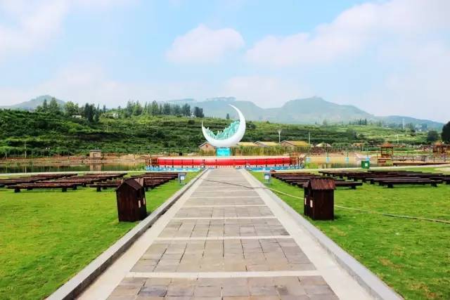 岱崮地貌核心區(qū)-崮園,偌大的留聲機(jī)哼唱著《彎彎的月亮》,與月亮灣遙相呼應(yīng)。