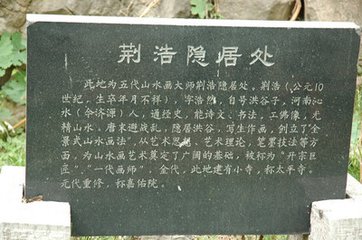 荊浩中國山水畫藝術(shù)的開山式人物,公元一千二百多年前的晚唐五代時期,隱居于洪谷山,自號洪谷子,開創(chuàng)以描繪高山峻嶺為特色的北方山水畫派。荊浩的畫風(fēng)后來由關(guān)仝、李成和范寬繼承,演變成開圖千里的“巨碑式”山水,荊浩成立中國山水畫鼻祖,洪谷山成為中國山水畫發(fā)源地。