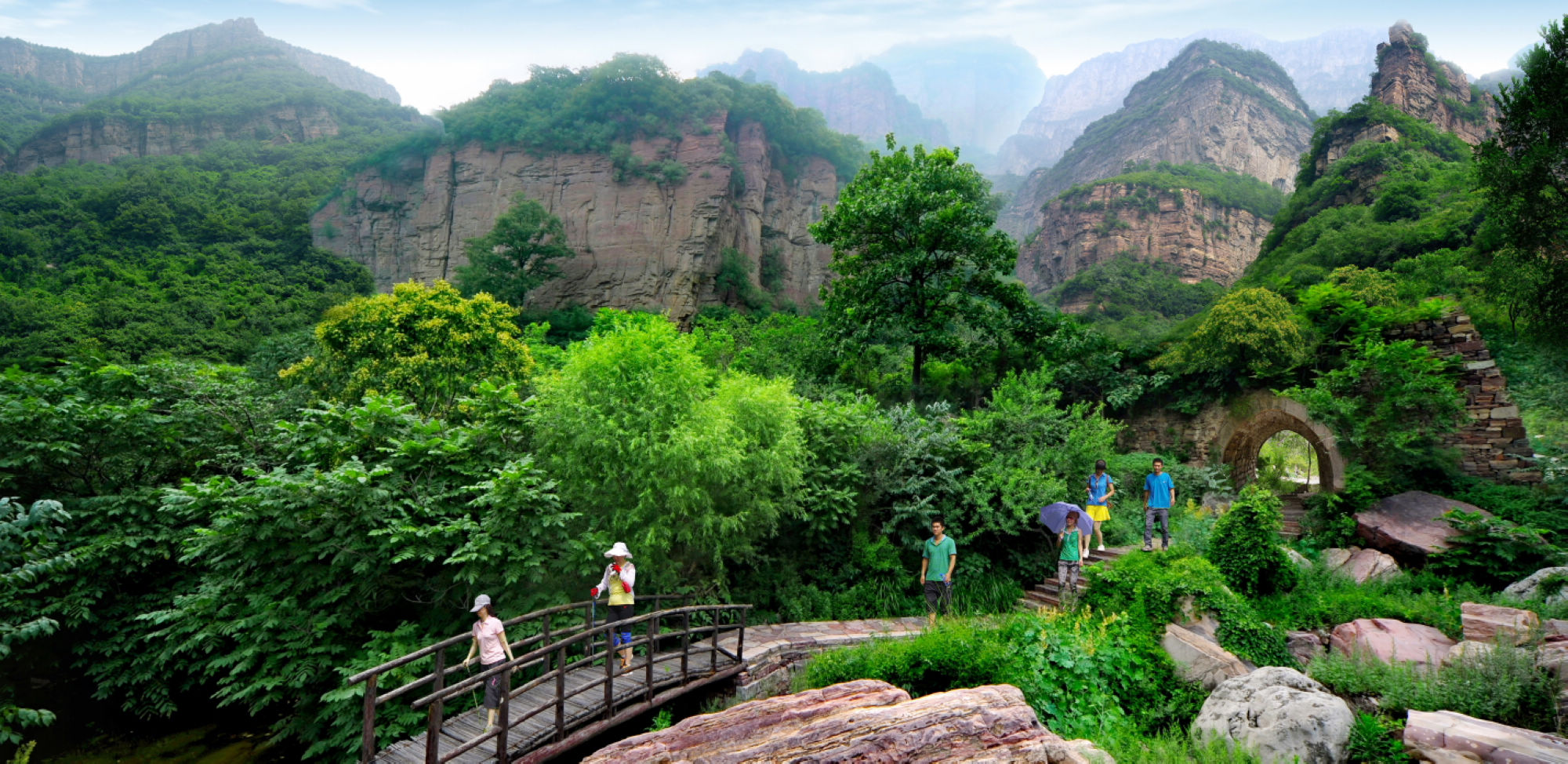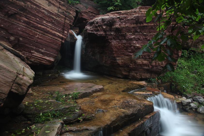 桃源谷也叫磊瀑溝。這是一道約三公里長(zhǎng)的風(fēng)景線,這道山谷兩旁山峰壁立,林木蒼翠,溪流如玉,綠潭如絨,十步一瀑,五步一潭,令你目不暇接。