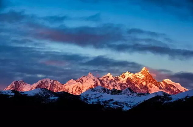 南迦巴瓦峰常常輕紗遮面,有緣人才能一窺真容,但其山峰卻猶如直刺天空的長矛,威武陽剛。