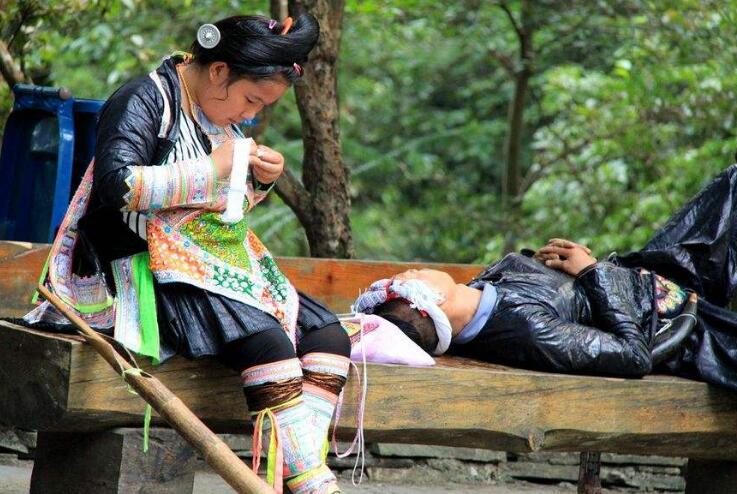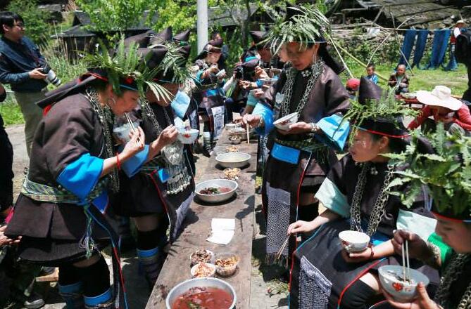 早餐后前往空申村寨依山而建,四周山巒起伏,林木蔥蔥,一條清澈的小溪從寨旁流過(guò),民居布局合理,吊腳樓鱗次櫛比。這里最為世人矚目的是每年一度的“茅人節(jié)”。每年農(nóng)歷二月至三月,成年男女青年不論年齡大小,結(jié)婚已否,凡自己樂(lè)意都可以任意找與自己情意相投的伴侶結(jié)隊(duì)到茅人坡扎茅人、對(duì)情歌、逗趣。特別意合情投者,則相互暗示,離群另尋靜處。節(jié)日氣氛熱烈、奔放、自由、浪漫。農(nóng)歷三月三,被譽(yù)為“世界超短裙故鄉(xiāng)”的榕江縣兩汪鄉(xiāng)空申苗寨人山人海,熱鬧非凡,苗族同胞歡聚一堂,慶祝自己最古老的“情人節(jié)”——茅人節(jié)。茅人節(jié)(古老的苗族情人節(jié))苗語(yǔ)為“撈沙麗”,又稱作“爬茅人坡”、“插茅人”。相傳,短裙苗族古時(shí)有本寨男女不通婚的習(xí)俗,婚姻由父母包辦,姑娘都要遠(yuǎn)嫁他鄉(xiāng),許多同寨青梅竹馬的男女不得不勞燕分飛。遠(yuǎn)嫁的姑娘陽(yáng)春三月均要返回娘家?guī)椭焊?。勞作之余,她們便帶著“三月粑”邀約寨里的未婚姑娘和小伙子到山上唱歌,用歌聲抒發(fā)與心上人被迫分離,遠(yuǎn)嫁他鄉(xiāng)的傷悲,并勸告未嫁的妹妹不要遠(yuǎn)嫁,向情人傾訴內(nèi)心深處的思念。唱到后來(lái)常常是淚水漣漣,泣不成聲。為了表達(dá)對(duì)家鄉(xiāng)和情人的依戀,她們用新的嫩綠枝葉和茅草扎成高低大小不等的“茅人”把,捆在杉樹(shù)桿上,然后插在最高的山頂上,一般插兩邊低排列,中間最高的象征大姐,兩邊低的為妹妹,寄予姐妹情意。我們結(jié)束游覽,返回榕江入住休息。