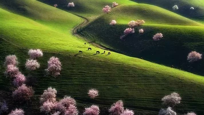 新疆的春天是絢爛的,可要想感受這里的絢爛,那就必須去看杏花
