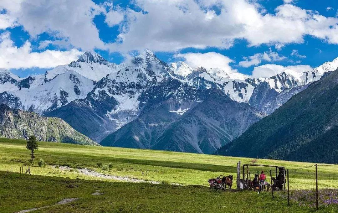 天山是亞洲最偉大的山脈之一,近處草原綠意盎然,牛羊成群,遠(yuǎn)處山峰綿延,通體覆蓋著皚皚白雪,神秘圣潔。