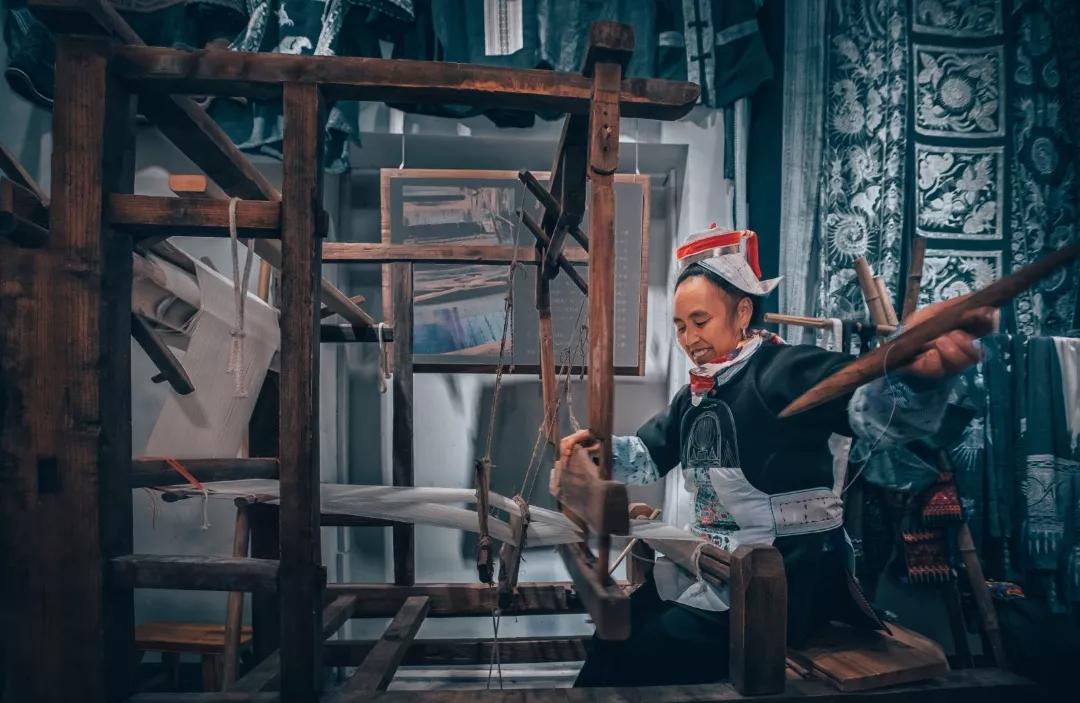 藍(lán)的像天,白的像云,布上的紋樣,是湘西的靈動(dòng)和神秘。