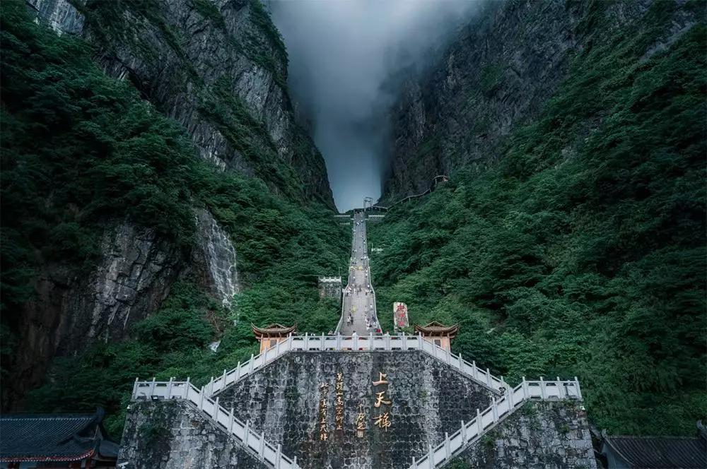 天門(mén)山,位于湖南省張家界市,古稱云夢(mèng)山、嵩梁山,因自然奇觀天門(mén)洞而得名。天門(mén)洞南北對(duì)開(kāi)于千尋素壁上,氣勢(shì)磅礴,巍峨高絕。