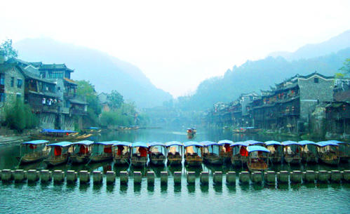 沱江,古城鳳凰的母親河,依城墻緩緩流淌,哺育著世世代代的古城兒女。坐上烏篷船,聽(tīng)著艄公的號(hào)子,看著兩岸已有百年歷史的土家吊腳樓,別有一番韻味。順?biāo)?,穿過(guò)虹橋,一幅江南水鄉(xiāng)的畫(huà)卷便展現(xiàn)于眼前,遠(yuǎn)離塵世的感覺(jué)悠然而生。