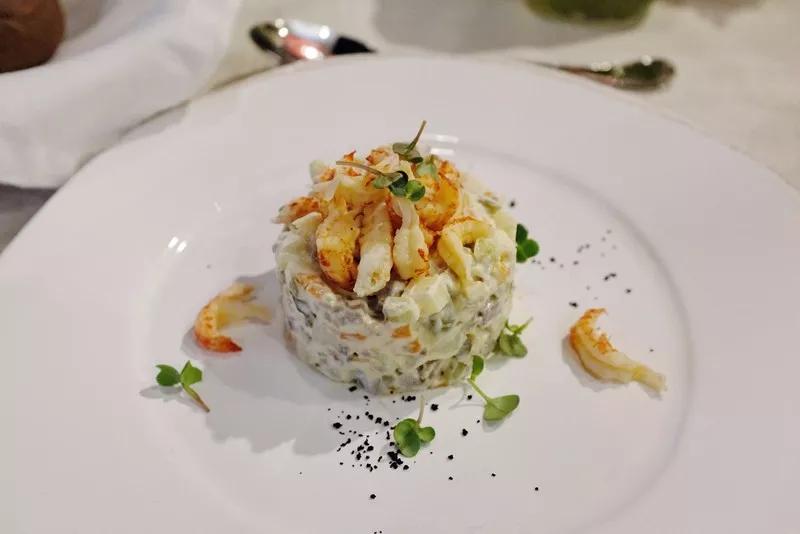 一頓完整的俄式料理,構(gòu)成上跟西餐差不多,包括前菜(沙拉)、湯、主菜、甜品等,菜是一盤盤上桌。大家習(xí)慣于認(rèn)為這種用餐順序和餐桌禮儀是純法式的,事實上,直到19世紀(jì)初,主流的法式服務(wù)就像中餐一樣,所有的菜式一齊上桌。直到后來,沙皇俄國駐巴黎大使極力推廣一盤盤上菜的俄式服務(wù),希望料理在最美味的狀態(tài)下提供給顧客,舊的法式服務(wù)才被淘汰,甚至連帶給法國料理帶來了一次革新。事實上,俄式服務(wù)才是西餐儀式感的鼻祖。
