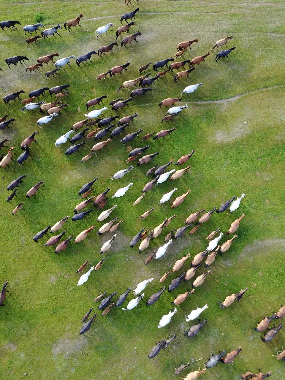 在這里你可以看到“萬馬奔騰”的恢宏場景,成群的馬匹在廣闊的草原飛奔,馬蹄濺起飛揚(yáng)的塵土,牧馬人揮舞著馬鞭,電視劇都無法拍出這宏偉的場面。