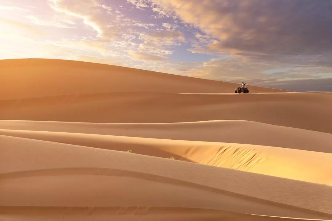 陽光灑下,沙漠變成金黃,與落日相依相伴,那一刻遙望遠(yuǎn)方,覺得自己是如此的渺小,大自然的震撼,是發(fā)自內(nèi)心的贊嘆。