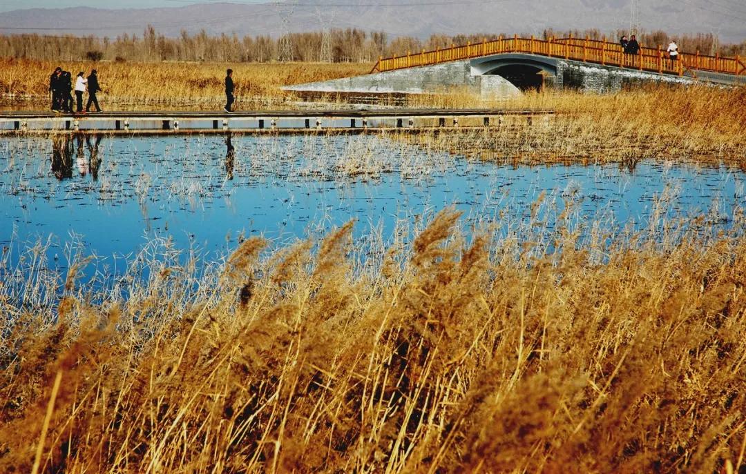 黑河諸水系在流經(jīng)張掖時,形成了大面積的河流、湖泊和沼澤,河流兩岸形成了帶狀的蘆葦濕地、紅柳灌叢濕地,所以這里生機(jī)勃勃,群鳥嬉戲。
