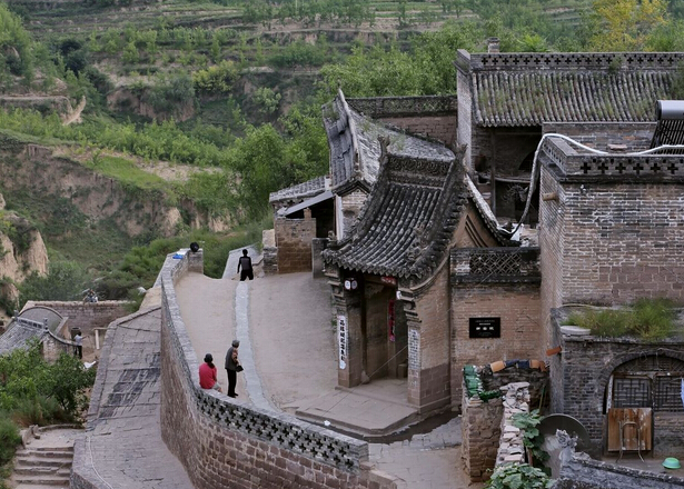 東財主家在鳳身上修建,西財主家在鳳的右翼上修建,鳳的左翼依然是舊村。東西財主好象在暗暗較量,在幾百米約 40度的高山坡上,精心設(shè)計,精心施工,依山就勢,高下疊置,從溝到頂,多達九層,其造型不同,風格殊異。