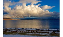 班公湖又稱錯(cuò)木昂拉紅波,藏語意為“長脖子天鵝”,有世界上海拔最高的鳥島,位于阿里地區(qū)日土縣城西北約12公里處,是中國日土縣與克什米爾交界的國際性湖泊,呈東西走向,長約155公里,南北寬約15公里,最窄處僅五米。湖面海拔4240米,水深57米,流域面積為28714平方公里。
