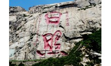 河山位于日照市區(qū)北十公里處,以“眾河之源”得名,海拔628米,高度為日照東部群峰之首,大有拔地凌霄之勢,巍巍聳立,誠謂“峭壁端嚴(yán),屹然一邑屏障”。河山山勢崢嶸,氣勢雄偉,遍布古跡,處處勝景,使游人大有登泰山之感。代表日照現(xiàn)代形象的巨書“日照”兩字刻于河山懸壁之上?!叭铡弊珠L20米,寬17.5米:“照”字長25米,寬 25.5米。它是漢字摩崖石刻的世界之最,載入世界吉尼斯大全,給河山增添了一大景觀。