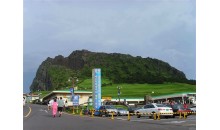 城山日出峰海拔182米,系10萬(wàn)年前海底火山爆發(fā)而形成,位于濟(jì)州島東端(33°27′北,126°56′東),是一塊高聳的巨巖,其頂部有巨大的火山口。