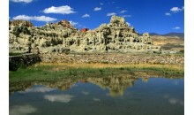 東嘎是扎達(dá)縣的一個(gè)靠山臨水,只有十幾戶人家的小村莊,在“古格王國(guó)”遺址西北約40千米。東嘎石窟散布在東嘎村北面斷崖上,路上能看到山上密密麻麻的洞窟?,F(xiàn)存洞穴接近200個(gè),延綿2千米,儼如蜂巢。其中繪有精美壁畫的幾個(gè)窟洞,集中在東面一片呈“U”字形的山崖上。