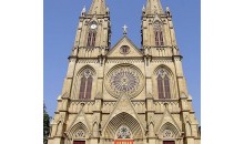 廣州石室天主教堂在市區(qū)一德路,清同治二年奠基,光緒十四年落成,歷時(shí)二十五年,是全國(guó)最大的一座以高直尖頂為特色的哥特式教堂。教堂結(jié)構(gòu)為一巍峨高聳的雙尖石塔,其上掛有大鐘一組,堂深78.69米,東西寬35米,高度由地面至天面平臺(tái)為28.7米,由天面平臺(tái)至塔頂端為29.8米,共高58.5米,堂內(nèi)是尖形肋骨尖叉的拱形穹窿,正面的大門(mén)和四周玻璃鑲嵌,可避免室外強(qiáng)光射入,使室內(nèi)光線保持柔和。