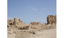 伯什哈千佛洞位于吐魯番市勝金鄉(xiāng),柏孜克里克千佛洞西約5公里,背靠火焰山,有小路可達(dá)。伯什哈千佛洞是木頭溝一系列千佛洞之一,西邊洞窟旁還建有寺院遺址。殘存的六個洞窟看,洞窟券頂式長方形??咔爸衅脚_寺廟,其中四個窟中殘存壁畫,風(fēng)格與柏孜克里克石窟相似,有高昌回鶻時期的遺風(fēng)。