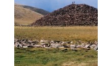 三海子墓葬及鹿石位于新疆維吾爾自治區(qū)青河縣查干郭愣鄉(xiāng)三海子夏牧場,為青銅時代的一處墓葬,距今約4000年。在面積約16.25平方公里地域的四個分布區(qū)內計有石圍石堆墓、石棺墓30余座,鹿石19通。什巴爾庫勒石圍石堆墓,石堆直徑78米,殘高25米;石圍直徑210米,寬3~5米。石堆與石圍之間有四條片石鋪成的通道,最寬的通道達1.6米。墓環(huán)水而建,氣勢宏偉,結構獨特,是歐亞草原少有的特大規(guī)模墓冢之一。