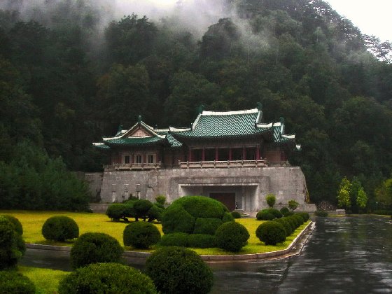 妙香山麓的國際友誼館,由金日成國際友誼館(本館)和金正日國際友誼館(別館)組成,前者比后者大,均為多層大型朝式建筑(與中國的樓閣相似),遠看似木結(jié)構(gòu),其實為混凝土建筑。金日成國際友誼館,始建于1974年,1978年8月28日開館,展覽館為6層樓房,建筑高43.3米,總建筑面積為5萬多平方米,190個房間。它的主要部分不是下圖中那外表的建筑物,而是開鑿在其后的大山中的山洞部分。展覽館按大洲和國家陳列著世界一百七十多個國家的政黨、國家元首、社會界和政界人士向金日成贈送的禮品,禮品達22萬多件。