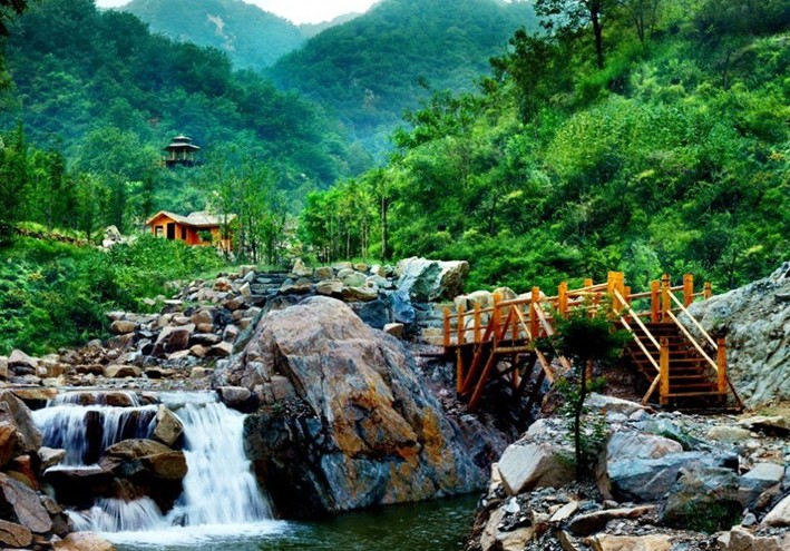 九如山瀑布群風(fēng)景區(qū)以自然山水景觀為特色,集生態(tài)觀光、休閑娛樂、養(yǎng)生度假為一體,是人與大自然和諧相處的典范之作。景區(qū)距濟南市區(qū)約48公里,東臨章丘市,南接萊蕪市和泰安市,植被覆蓋率97%以上,負(fù)氧離子含量每立方厘米達(dá)7萬個以上,居濟南之首。景區(qū)面積三十六平方公里,可分為“深譚飛瀑景觀區(qū)”、“九如峽谷景觀區(qū)”、“天蓬瀑布景觀區(qū)”、“長城古道景觀區(qū)”四大旅游區(qū)。群山連綿,峰巒疊嶂,峽谷縱橫,森林茂密,山泉遍布,溪流交錯,瀑布成群,這些令人震撼的景觀由長度堪稱世界第一的實木棧道巧妙連綴在一起,形成了以八潭、九瀑、二十四泉、三十六峰為核心景觀,以山峰、棧道、山泉、溪流、瀑布、深潭為特色的中國北方罕見的大型生態(tài)自然景區(qū),同時它又是泉城七十二名泉的發(fā)源地,濟南南部山區(qū)三川之一——錦繡川的源頭.
